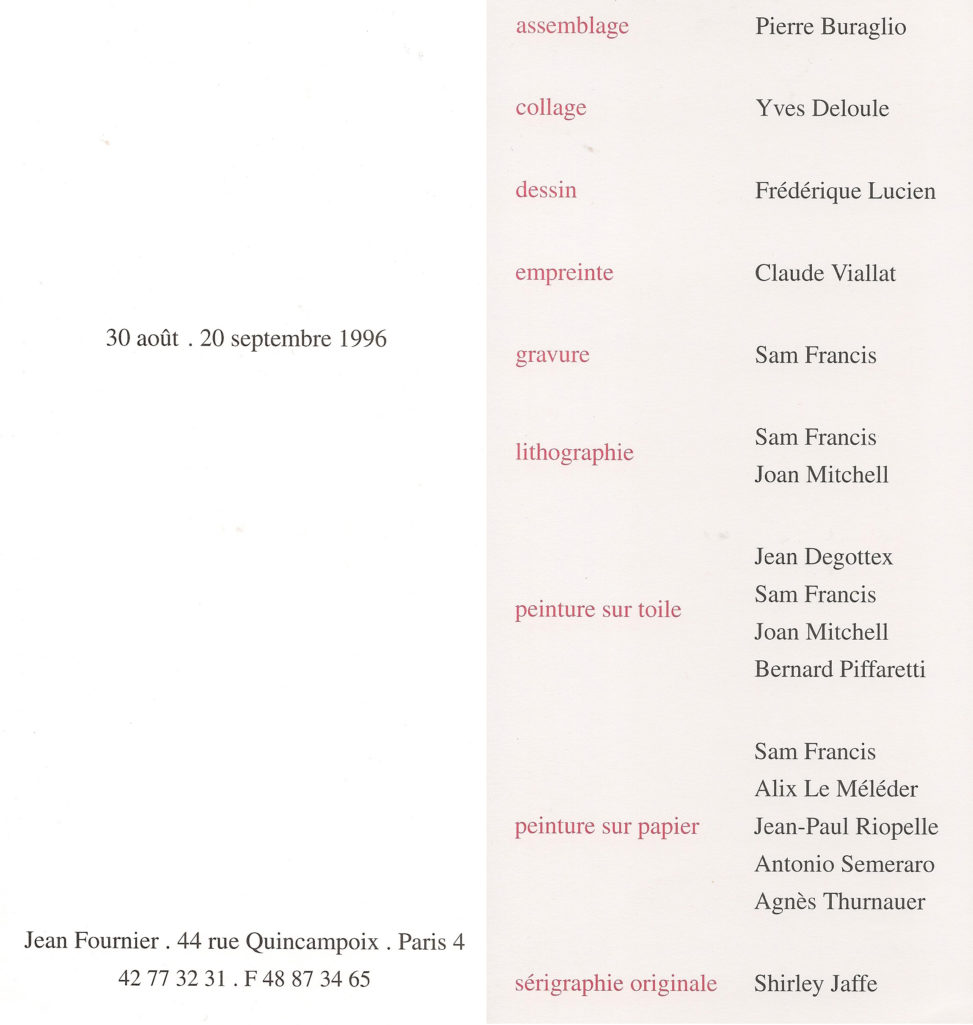 30 août – 20 septembre 1996, galerie Jean Fournier, Paris, 1996
