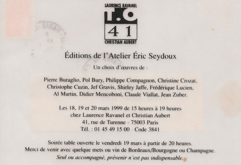 Laurence Ravanel T.O 41, chez Christian Aubert, Editions de l’Atelier Seydoux, 1999